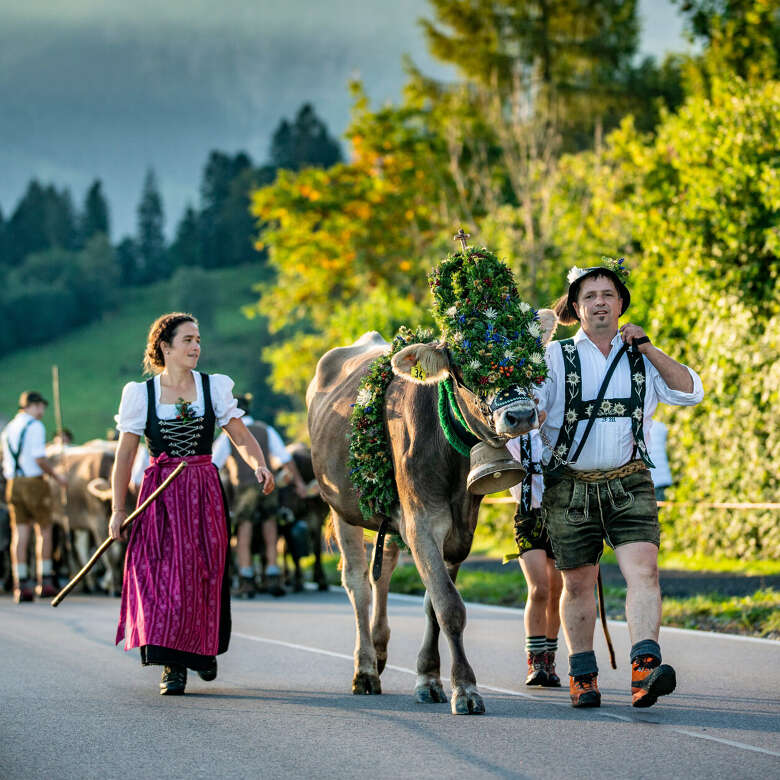 Wenn sich kurz darauf die Wiesen bunt färben, der Duft von Heu die Luft erfüllt und das Geläut der Glocken von den Alpen erschallt – dann ist der Sommer in Oberstaufen angekommen.
